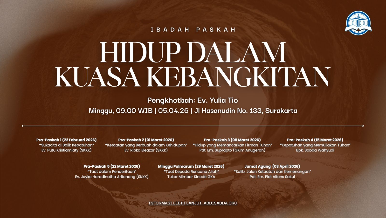 Paskah bukan sekadar perayaan tahunan, tetapi momentum bagi setiap orang percaya untuk kembali mengingat kasih Kristus melalui penderitaan, pengorbanan, hingga kemenangan kebangkitan-Nya. Melalui rangkaian ibadah Pra-Paskah hingga Minggu Paskah, jemaat diajak berjalan bersama dalam perjalanan iman — belajar taat, bertumbuh dalam firman, dan mengalami pembaharuan hidup di dalam Tuhan.